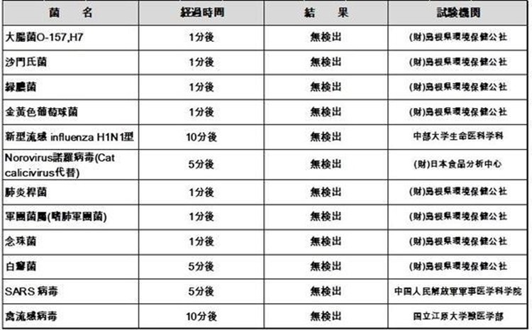經權威檢驗機構(KCL)通過多項安全性試驗認證。經日韓中多家權威實驗室針對多種病毒、細菌、與黴菌等進行了抗菌抗病毒試驗認證。