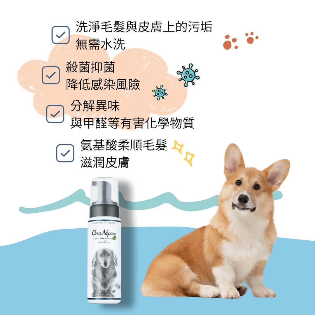 寵物專用泡沫乾洗澡,不需用水沖洗,具有消毒、抗菌、除臭和改善毛髮光澤,與去除寵物皮毛和皮膚上的污垢與清潔之作用。